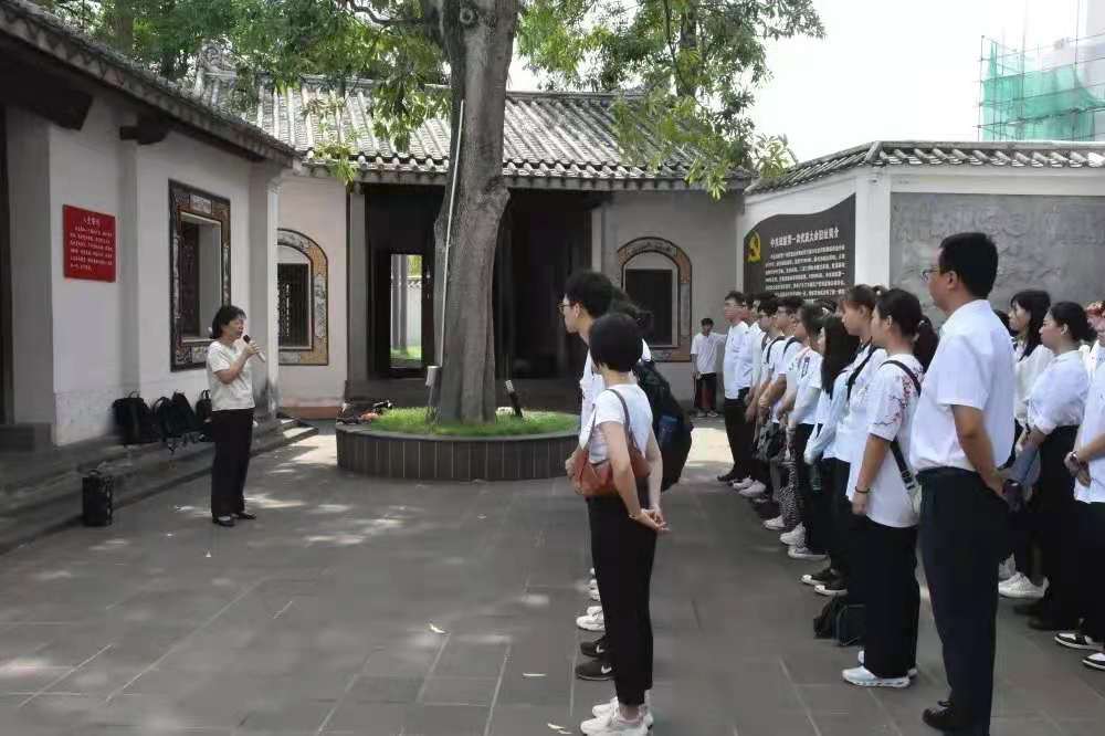 上午9:40,学院党委全体党员到达中共琼崖一大旧址开展实践学习,全体党员面对鲜红的党旗举起右拳,重温入党誓词。随后,全体党员席地而坐,以“庆祝建党一百周年”为主题开展朗诵活动,各支部积极参加,选手感情真挚,用最简练的文字,阐述党的艰辛历程,表达对党的敬意。