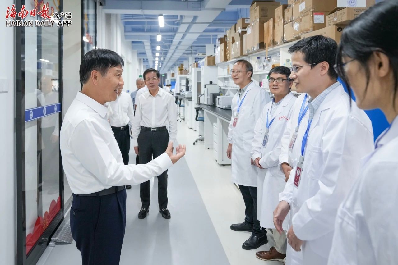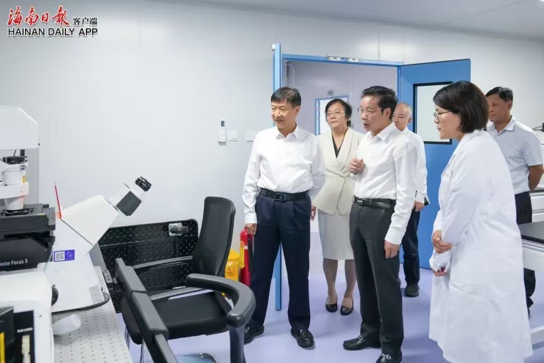 9月2日下午,省长刘小明到我校调研并看望慰问部分教师代表,强调要努力建成热带特色鲜明的国际化高水平医科大学,培养让人民放心托付健康乃至生命的优秀医疗工作者和医学科学家。刘小明省长首先来到我校实体化运行的海南省医学科学院(以下简称“医科院”),走访实验室、共享科研平台等,实地了解医科院建设、人才引育等情况,看望慰问教育工作者,并与他们亲切交流。