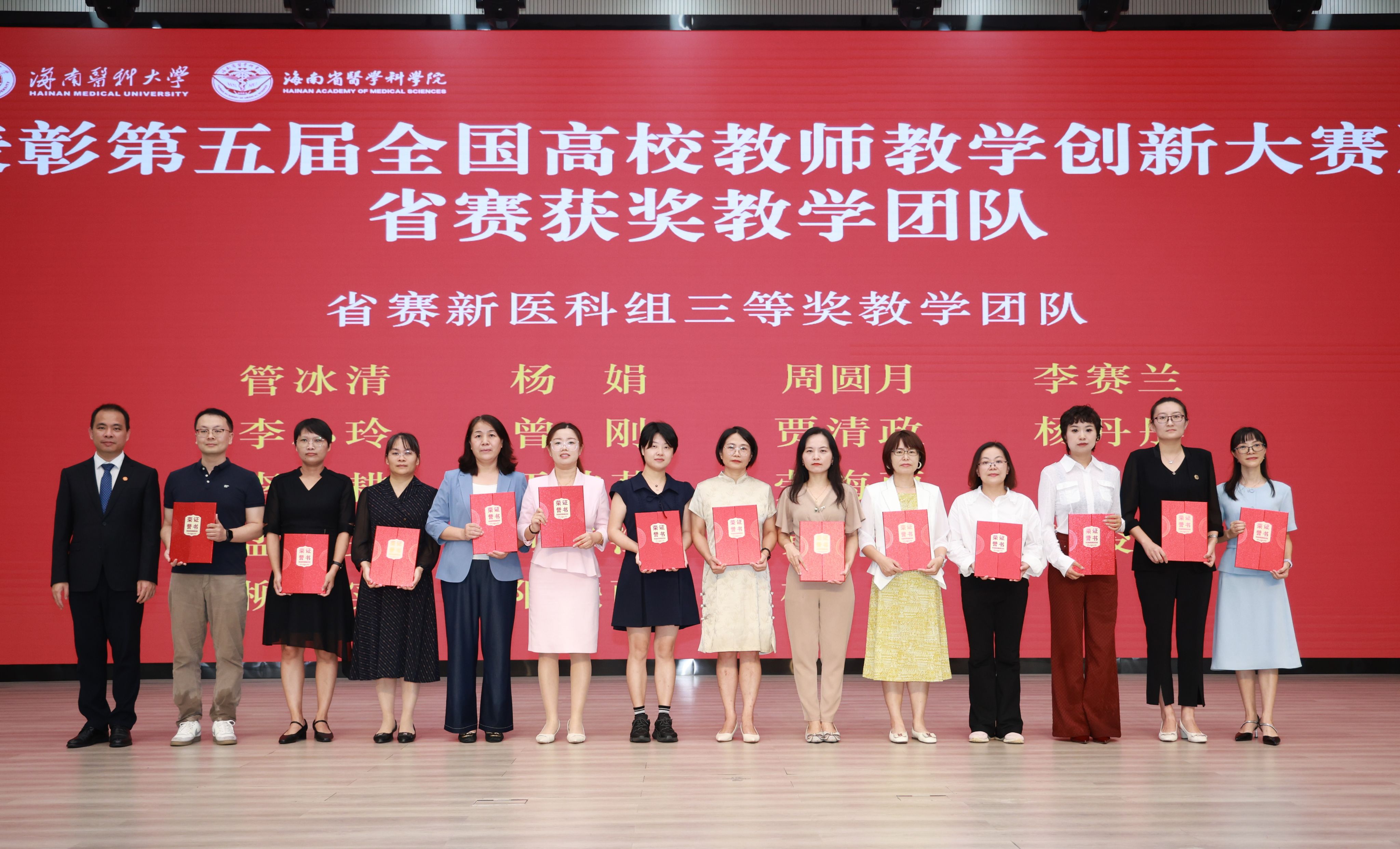 副校长黄斌文为第五届全国高校教师教学创新大赛及省赛获奖团队代表颁发证书