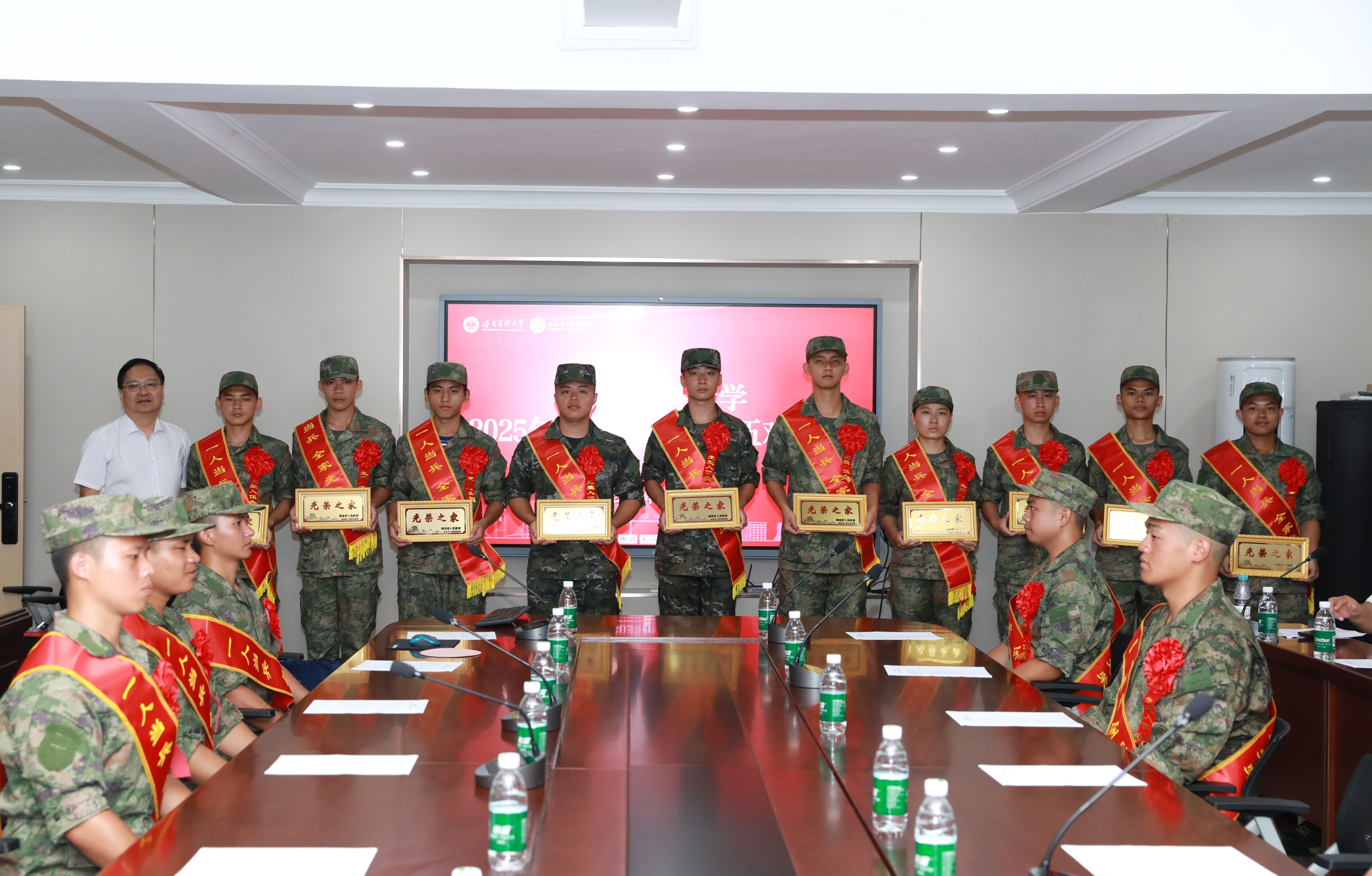 张巍为新兵们颁发荣誉牌和纪念品,传递对同学们参军报国的认可,表达学校的牵挂与期盼。愿同学们携荣光、赴征程,在军营淬炼成钢,为校争光、为国奉献!