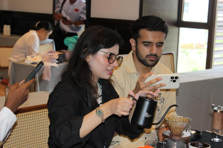 留学生在兴隆体验手冲咖啡