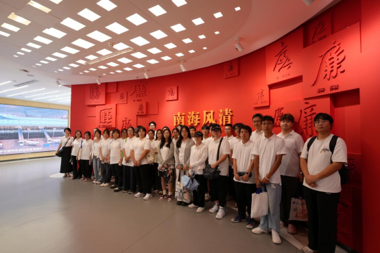 在庄严肃穆的海瑞广场前,学院党委书记杨文君率先为同学们阐明活动主旨与流程,着重阐释海瑞的生平及其廉政精神的时代价值。随后,新生们追随讲解员的脚步,透过展馆内泛黄的史料文献,仿佛穿越历史烽烟,深入探寻这位“海青天”——明代清官海瑞刚正不阿、廉洁奉公的一生,体悟琼崖先贤“一身正气昭日月,两袖清风鉴古今”的崇高品格。