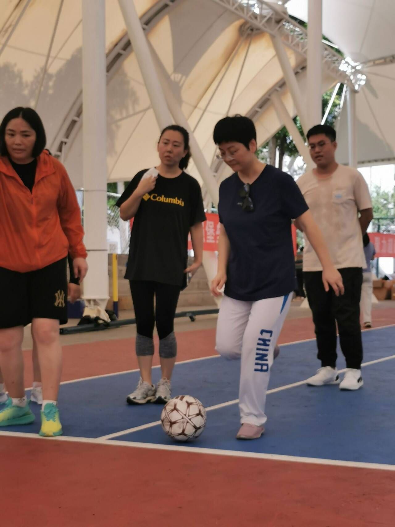 趣味保龄球项目充满了欢乐与轻松。每队6名选手站在距离摆放成正三角形的10个矿泉水瓶5米处,每人有3次击瓶机会,以击倒矿泉水瓶的总数为本队成绩。教职工们纷纷施展自己的“球技”,现场欢声不断,既有“一击全中”的喝彩,也有虽未全中却乐在其中的轻松场面,充分展现了教职工们的活力与热情。