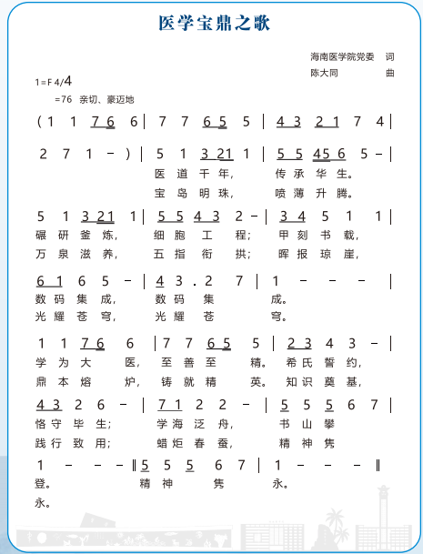 文化符号是一所大学的灵魂印记。海南医科大学在校训、校风、校徽、校歌等方面的建设与演变,反映出学校从历史走向未来的文化自觉与自信,也成为激励全体师生医护员工不断前进的精神力量。
