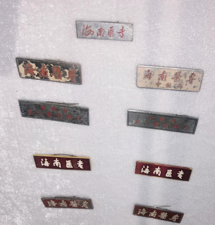 在学校早期阶段,校徽记录较为模糊,学生曾佩戴“海南医专”“广东省第八卫生学校”等字样徽章。