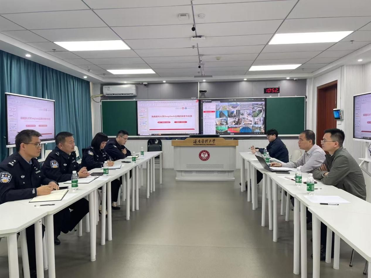 严勇介绍了海口边检总站领导高度重视人工智能等新技术应用,正努力探索DeepSeek人工智能应用并已梳理多个业务场景的情况,对我校率先在省内本地化部署DeepSeek并陆续推出各类应用场景表示赞扬,希望与我校沟通交流人工智能等新技术应用。