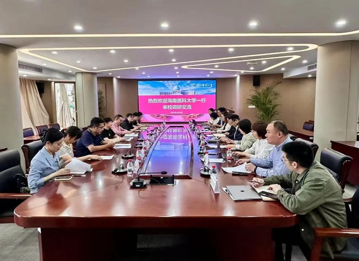 在温州医科大学,通过座谈交流、听取本科教学公开示范课、实地走访校史馆及附属眼视光医院等方式,重点调研其内部质量监测体系运行模式、临床教学基地同质化管理及教学改革实践经验。双方围绕质量保障体系建设的制度化路径、教学改革与创新成果转化等展开交流,并就人才培养合作框架中的具体内容进行了沟通。